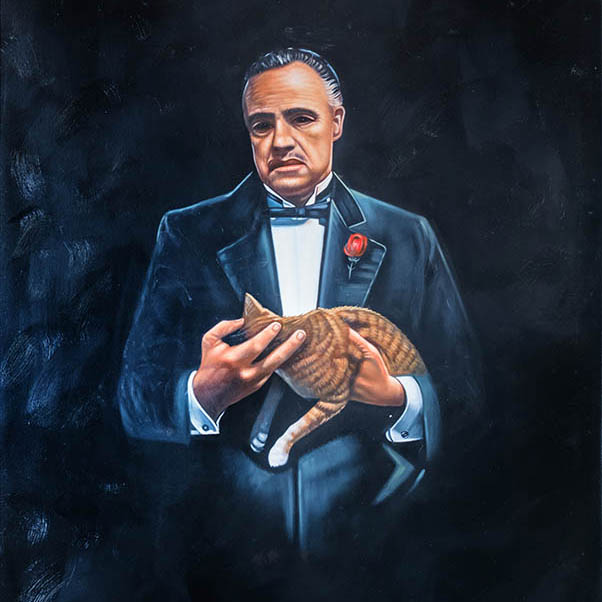 In their exploration of pop culture icons, Rossi demonstrates a profound connection to classic cinema, seen in powerful portraits like "Marilyn Monroe," "The Godfather," and "Don Vito Corleone," where the subjects' personas are portrayed with remarkable authenticity and psychological depth.