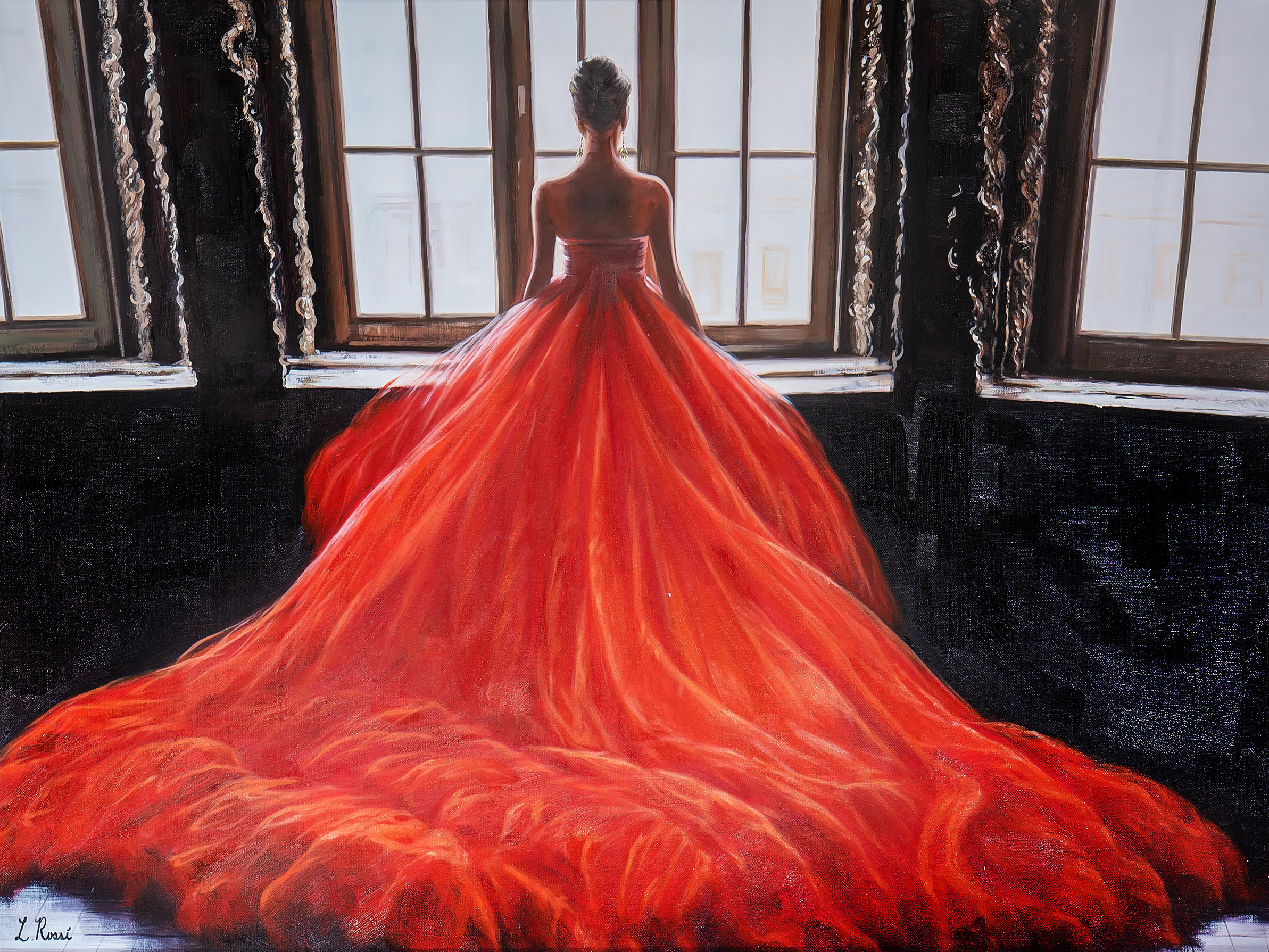 Drawing inspiration from both contemporary and historical influences, L. Rossi’s paintings are celebrated for their narrative strength, capturing viewers' imaginations and inviting introspection. Each piece reveals Rossi’s dedication to storytelling through art, leaving a lasting impression of sophistication, passion, and timeless allure.
